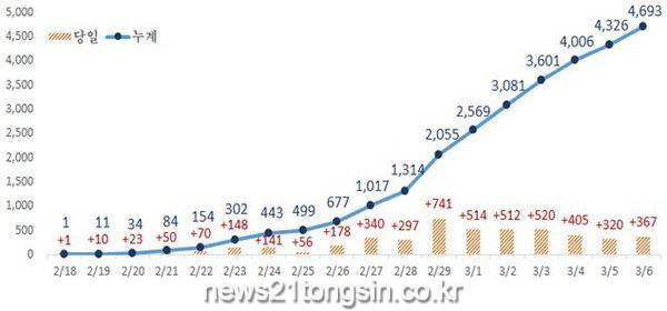 지난 5일까지 대구시에서 관리 중인 신천지 교인 10,914명 중 90% 이상이 진단검사를 받은 것으로 파악되고 있으며, 이 중 3,617명이 확진 판정을 받았다.