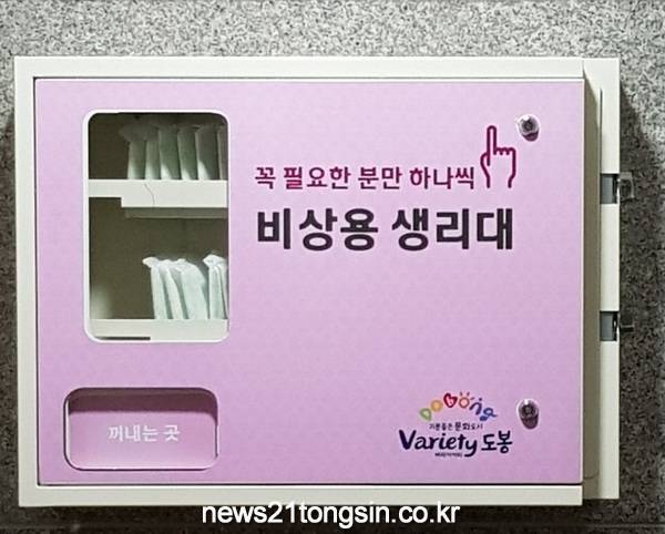 도봉구(구청장 이동진)는 여성이 행복한 여성친화도시 조성을 위해 ‘비상용 생리대 무료지급기’를 구민 이용이 많은 동주민센터, 복지관, 도서관 등 공공기관 21곳에 확대 설치한다.