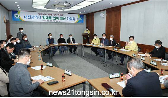 대전시와 지역의 소상공인, 임대인 등 관계자들이 5일 코로나19로 인한 피해 최소화를 위한 임대료 인하 운동에 힘을 모으기로 했다.