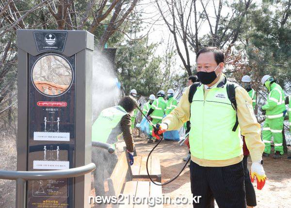 이날 작업팀은 총 6개조로 나뉘어 산책로 구간의 쓰레기 수거 작업과 함께 코로나19 예방 방역작업, 시설물 이상 유무 등을 점검했다.