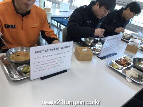 동부소방서는 직원 간 접촉을 최소화하기 위해 테이블마다 가림막을 설치해 얼굴을 마주 보거나, 식사시간에 대화 및 통화를 자제하도록 하고, 배식시간을 조정해 한 번에 입장하는 인원도 제한하기로 했다.