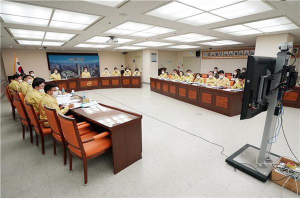 유덕열 동대문구청장이 9일(월) 오후 3시, ‘시장-구청장 긴급 비상대책영상회의’에서 박원순 서울시장, 타 자치구청장들과 함께 코로나19 관련 비상대책을 논의했다.