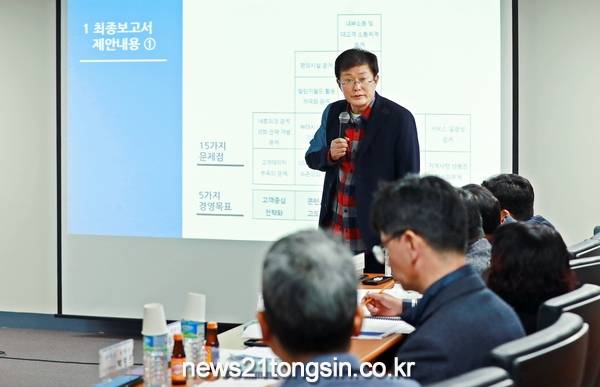 김광수 대표는 365세이프타운에 대해 운영인력의 전문성 문제와 고객데이터 부족, 홍보전략 부족 등 15가지 문제점을 바탕으로 ▴고객중심 전략화▴콘텐츠 고도화▴마케팅 적극화▴맨파워 강화▴당면과제 즉시해결 등 5가지 경영목표를 제안했다.