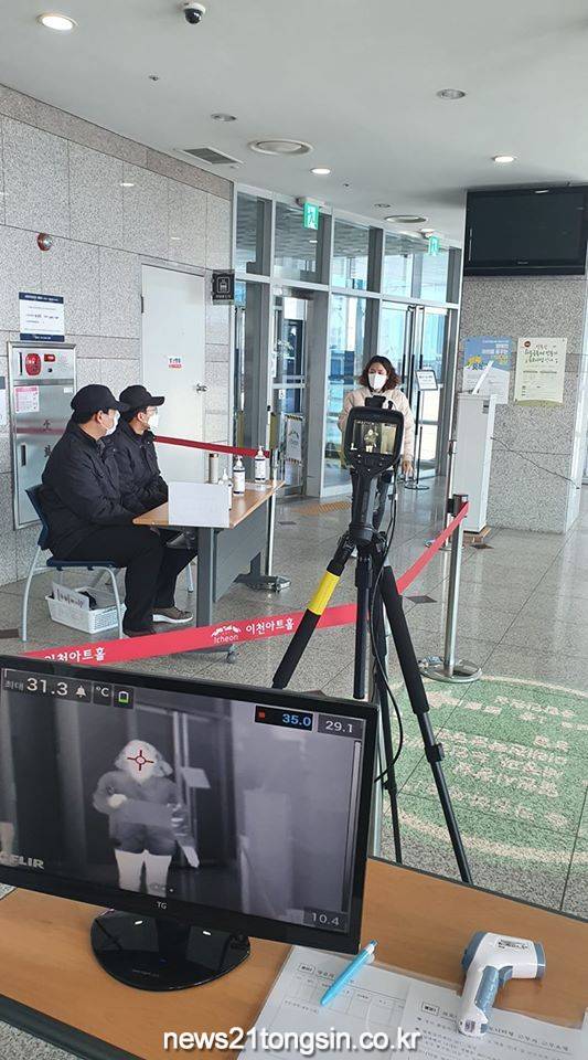 이천시청에 근무하는 사회복무요원 20여 명은 지난 2월 24일부터 유동인구가 많은 관고전통시장, 신둔면 사기막골도예촌 등에서 정기적인 방역 활동을 전개하고 있으며, 이천시청을 출입하는 민원인들을 대상으로 손 소독을 위한 세정 및 마스크 착용 안내, 발열체크 지원 등 다양한 방역 업무에 투입되어 활약하고 있다.
