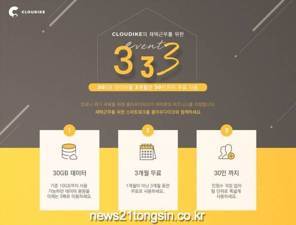 무료 사용기간 동안 30GB를 30명까지 사용할 수 있으며, 신청은 ASD코리아 홈페이지(http://www.cloudike.co.kr)에서 받는다.