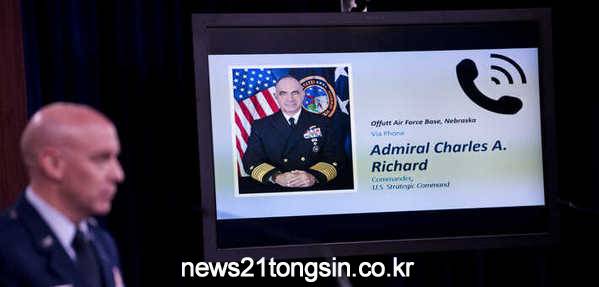 17일 미국 워싱턴 인근 국방부 청사에서 찰스 리처드 전략사령관의 전화 기자회견이 열렸다.