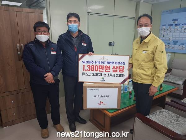 SK건설(주) M16 PJT 현장소장 코로나 19 관련 마스크 및 손 소독제 기탁