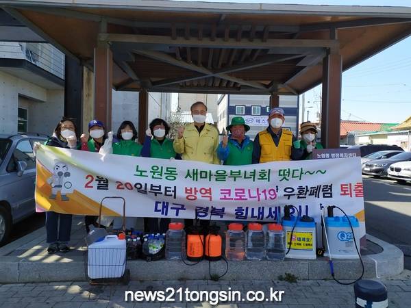 (대구=뉴스21통신) 유재원기자 = 북구 노원동 새마을부녀회는 3월 20일(금) 오전 10시부터 전통 골목시장 일원을 중심으로 코로나19 종식을 위한 자체 방역활동을 진행하였다.