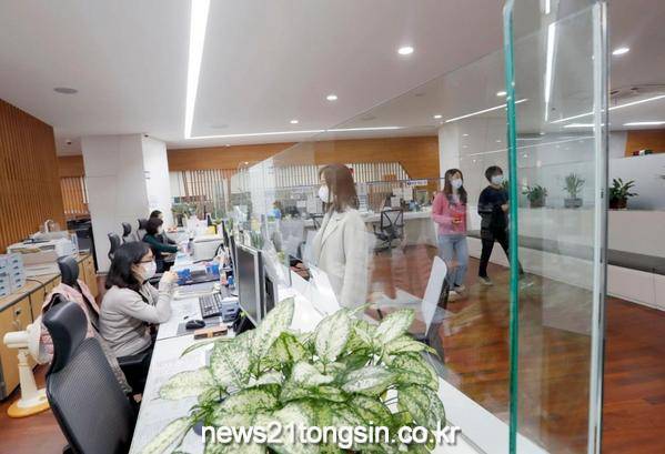 이에 강화유리 소재 투명 가림막 사이로 민원인과 직원 간 거리를 유지하면서도 서로를 확인, 서류를 주고받는 등 ‘비대면’ 업무처리가 가능해졌다.