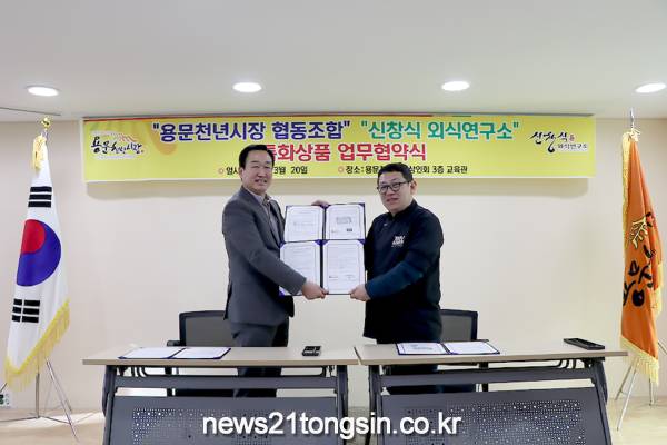용문천년시장 협동조합(이사장 유철목)과 신창식 외식연구소(대표 신창식)‘는 지난 3월 20일 용문천년시장 특화상품의 판로활성화를 위한 업무협약식을 개최하였다.