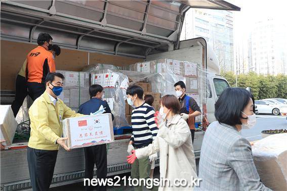 코로나19로 어려움을 겪고 있는 대전시민을 돕기 위해 중국 내 자매‧우호도시 등 5개 도시가 약 1억 3,000만 원 상당의 방역물품을 지원해왔다.
