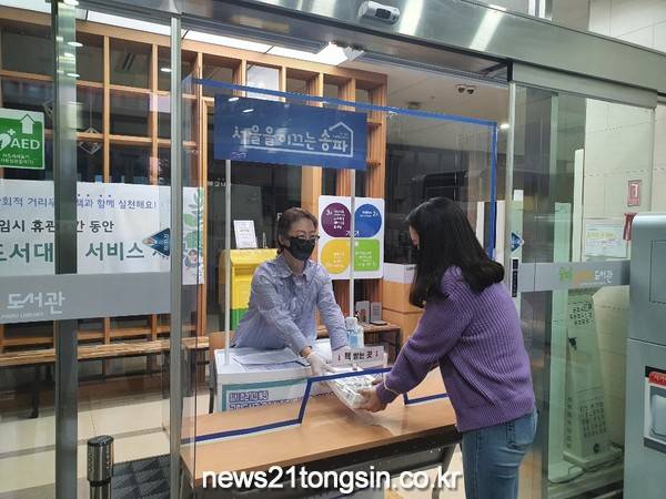 구는 코로나19 예방을 위하여 대출신청을 받은 모든 도서를 책 소독기로 소독 후 별도 포장하여 제공하고 있다. 또한 직접대면을 최소화하기 위해 관내 구립도서관 11개소에는 도서 전달을 위한 안심부스를 설치하였다.
