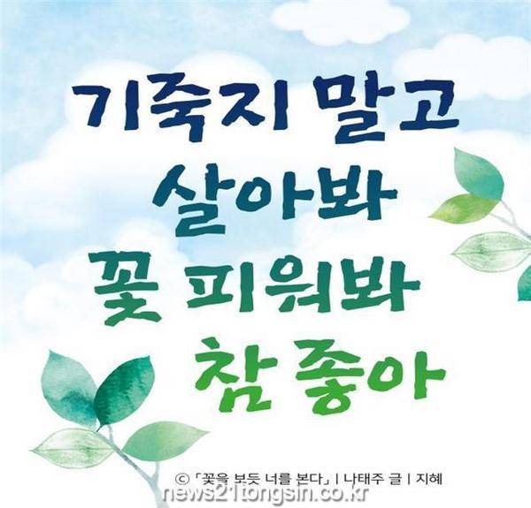 나 시인은 세 살 때 엄마를 잃은 손자에게 용기를 주기위해 만들었던 시 ‘풀꽃3’의 글귀 ‘기죽지 말고 살아봐, 꽃 피워봐, 참 좋아’를 추천했다.