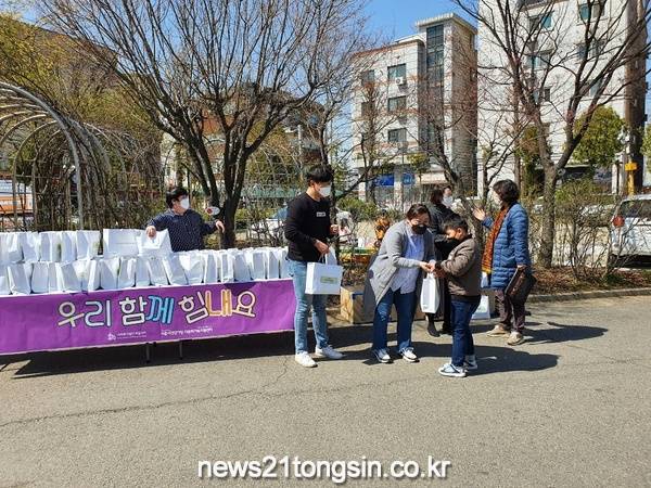코로나19 극복을 위해 총력을 다 하고 있는 시흥시(시장 임병택)에 따뜻한 손길이 이어지고 있다. 지난 30일 시흥시 건강가정 ‧ 다문화가족지원센터(센터장 강은이)는 군서초등학교를 찾아 코로나19 응원이 담긴 아동 반찬 도시락과 일회용 마스크를 전했다.