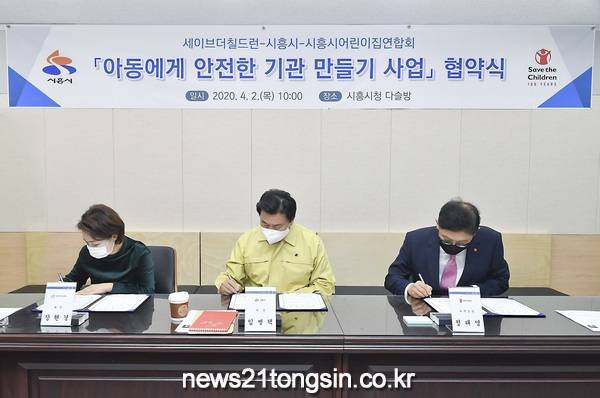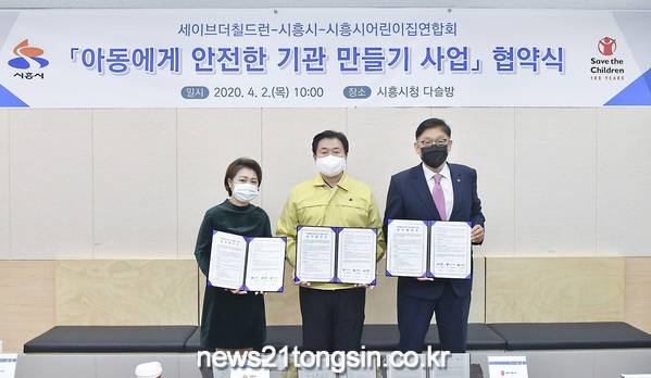 시흥시(시장 임병택)는 2일 시청 다슬방에서 시흥시어린이집연합회, 세이브더칠드런과 함께 ‘아동에게 안전한 기관 만들기’ 사업추진을 위한 업무협약을 체결했다.