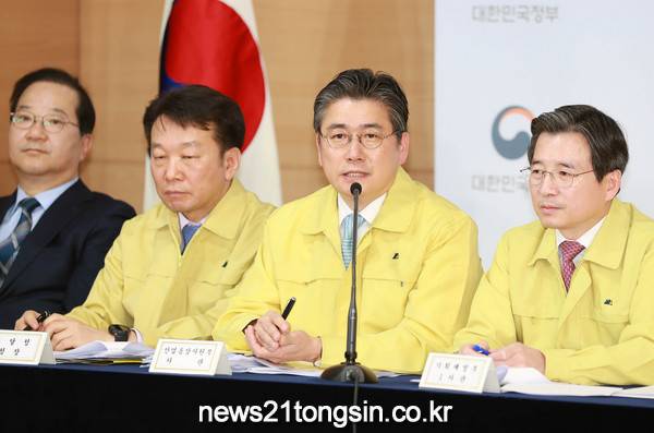 정부합동 브리핑에 참석하여, 기자단의 질의에 대한 답변을 하고 있다.