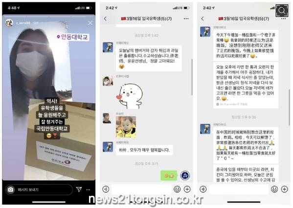 안동대는 지난 1월 28일부터 코로나 19 확산을 막기 위해 외국인 유학생과 교환학생 관리 대책을 수립하고 전체 입국 유학생에 대해 1인 1실 보호시설로 입주시켜 종교와 출신 지역, 성별에 따른 다양한 메뉴의 식사와 간식을 비롯한 생활용품을 제공해 왔다.