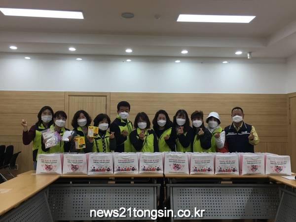 정왕4동 지역사회보장협의체(공공위원장 서명범, 민간위원장 신원철)는 지난 4월 2일 취약계층 독거 어르신 40명에게 가정 방문을 통해 코로나 방지를 위한 마스크(면 수제 마스크 2개, 손수건 마스크 키트 1개, KF94 2개)와 면역력 강화를 위한 비타민을 전달하였다.