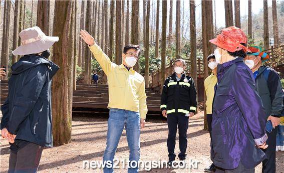 이어 장태산 자연휴양림 휴양관과 숲속교실 등 시민들이 밀집할 수 있는 공간을 점검하고 철저하고도 주기적인 방역과 접근 통제를 지시했다.