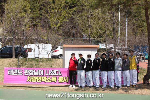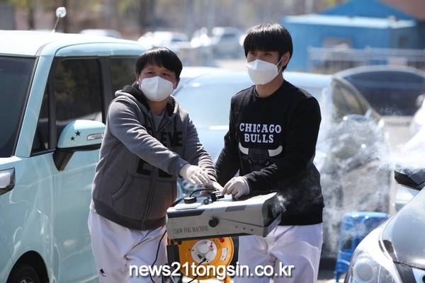 (대구=뉴스21통신) 유재원기자 = 4월 5일 구름 한 점 없는 화창한 날씨에 달서구태권도협회 소속 성서지역 태권도지도자들이 코로나19를 이대로 가만히 둘 수 없다며 이곡체육공원에서 지역주민들을 대상으로 차량연막소독 봉사의 시간을 가졌다.