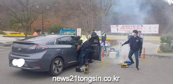 (대구=뉴스21통신) 박창남 기자 = 달서구는 “도원동자율방범대와 수밭청년회”에서 지난 4월 4일 월광수변공원 방문객의 차량을 대상으로 코로나19 감염증 확산 방지 및 차단을 위하여 차량 방역활동을 실시했다고 밝혔다.