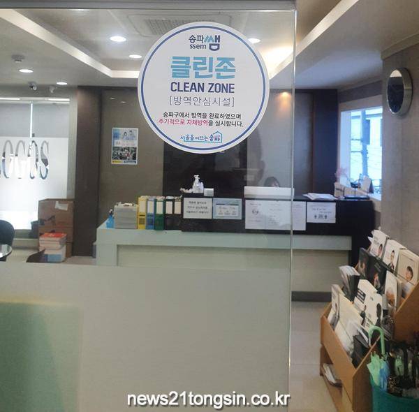 송파구(구청장 박성수)가 방역소독 등 코로나19 예방수칙을 준수하고 있는 관내 학원·교습소를 ‘송파쌤 클린존 방역안심시설’로 인증한다고 7일 밝혔다.