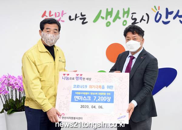 안산시(시장 윤화섭)는 안산시자원봉사센터에서 코로나바이러스감염증-19(코로나19) 확산 예방을 위해 관내 저소득층 등 취약계층에 전달해 달라며 자원봉사자들이 손수 만든 필터교체형 면 마스크 7천200개를 전해왔다고 7일 밝혔다.
