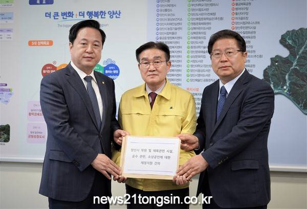 더불어민주당 김두관 의원(양산시을 후보)과 더불어민주당 양산시갑 이재영 후보는 7일 양산시장을 찾아 “사회적 거리두기 운동에 적극 동참하며 휴원 중인 학원, 교습소, 실내체육시설에 긴급재난지원이 이뤄져야 한다”며 양산시의 지원을 요청했다.