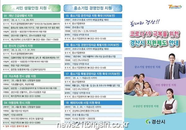 한편, 경산시는 코로나19로 인해 어려움을 겪고 있는 시민, 소상공인, 중소기업 등을 위해 각종 지원제도를 시행하고 있으며, 신속지원을 위해 지난 4월 1일부터 태스크포스를 가동하고 있다.