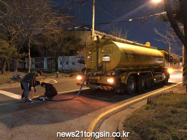 시는 지난 4월 6일 저녁 8시 40분경 옥구천(옥구7교)에 흰색 폐수가 나온다는 민원을 접수하고, 즉시 현장 확인한 결과 원인불명의 흰색물이 우수토구에서 흘러나오고 있는 사실을 확인했다. 야간이라 식별이 용이하지 않고 차량 통행이 많아 위험한 상황이었지만, 오염물질의 차단이 무엇보다 시급한 상황을 고려해 우수맨홀을 확인하며 약 900m를 역추적한 결과 K업체에서 유출되고 있는 사실을 적발하게 됐다.