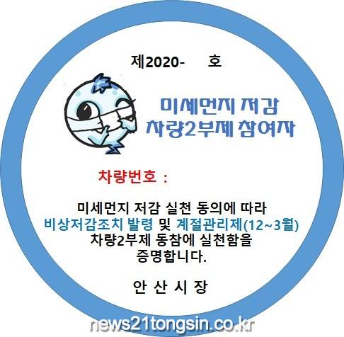안산시(시장 윤화섭)는 미세먼지 저감을 위해 공공기관만 실시하던 차량 2부제를 시민들의 자율참여 방식으로 전환해 실시한다고 13일 밝혔다.