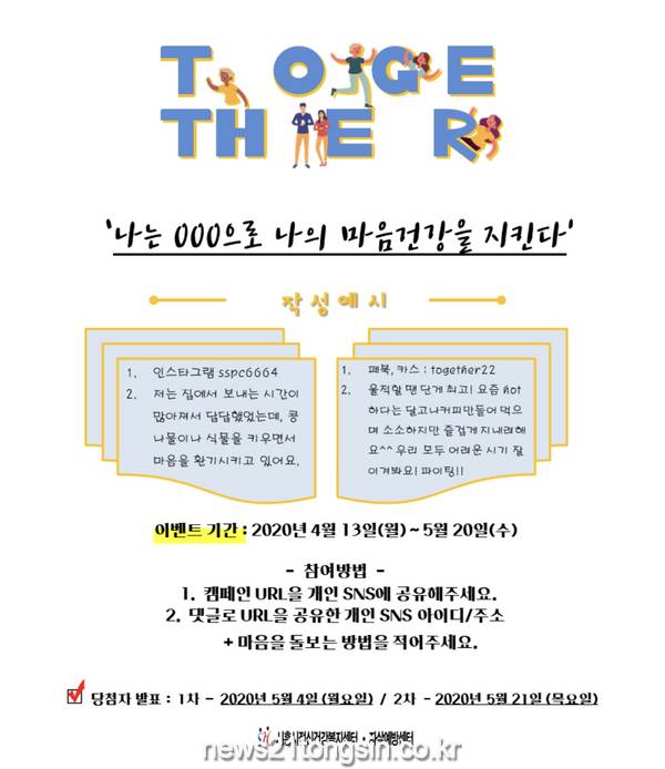 캠페인에 참여한 한 플레이스타터는 “코로나 19를 통해 변화된 지금의 상황에 당황하고만 있지 말고 건강한 일상생활을 영위할 수 있는 댜양한 방법을 행동으로 실천해야겠다”며 “앞으로도 시민들이 각자의 위치에서 최선을 다하고 있는 모습을 공유하며 심리적 방역을 통해 나를 챙기고 타인을 돌보는 계기를 마련하기를 기대한다”고 말했다.
