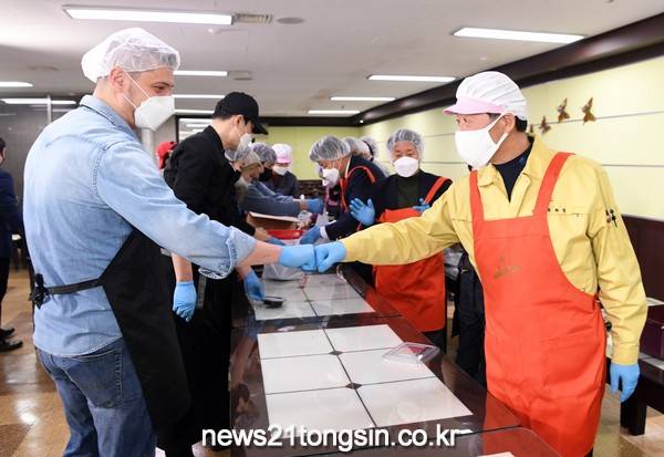 이날 시청 구내식당에서 스타셰프 6인과 나눔협회 후원회원 등 20여명이 모여 진행된 행사는 코로나19 지역사회 감염 예방을 위해 복지시설 무료급식이 코로나 사태 진정 시까지 잠정 중단되면서 든든한 한 끼 식사가 힘들어진 취약계층의 영양 불균형을 해소하고 건강을 지키기 위해 마련됐다.