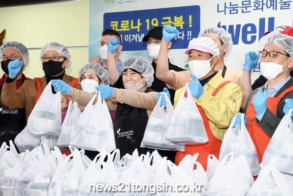 안산시(시장 윤화섭)는 14일 ㈔나눔문화예술협회와 손잡고 코로나바이러스감염증-19(코로나19)로 어려움을 겪는 취약계층을 위해 ‘스타셰프 well-made 도시락’ 나눔 행사를 진행했다.