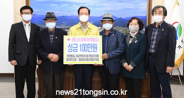 거창향교(전교 김삼수), 성균관유도회 거창군지회(회장 박정제), 성균관 청년유도회(회장 신춘성) 및 성균관여성유도회(회장 장미정)는 14일 군청을 방문해 성금 100만원을 기탁했다. 전통문화 계승과 예절교육 등 다양한 활동을 펼치고 있는 거창향교와 성균관 유도회 회원들은 코로나 극복을 위해 뜻을 모았다.