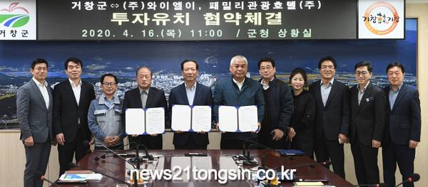 거창군은 16일 군청 상황실에서 거창일반산업단지 및 가조온천 관광지 내 투자자 2개사와 투자금액 135억 원, 고용인원 70여 명 규모의 투자유치협약(MOU)을 체결했다고 밝혔다.