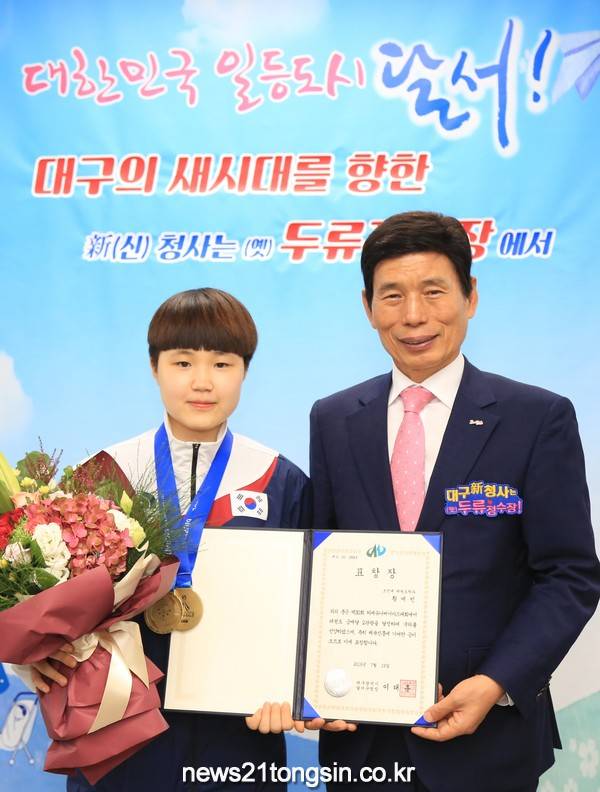 (대구=뉴스21통신) 박창남 기자 = 달서구는 4월 21일‘대구의 중심, 새시대의 희망 달서’를 널리 알리기 위해 우리구 출신 여자축구 前 국가대표 이민아(29세)씨와 태권도 품새종목 국가대표 황예빈(20세)씨를 달서구 홍보대사로 위촉했다고 밝혔다.