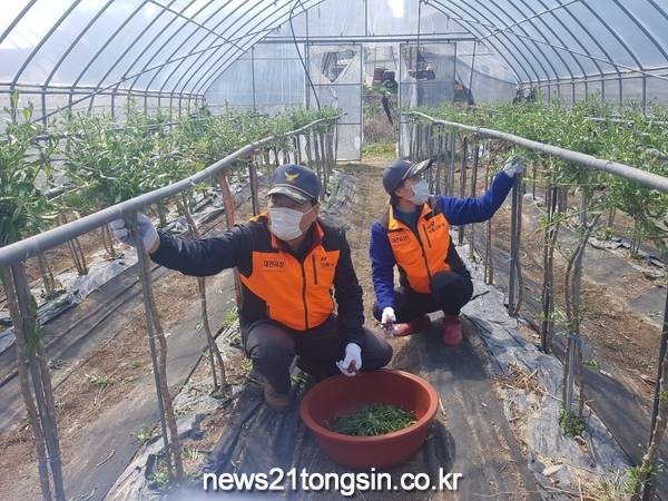 이번 일손돕기는 코로나19 여파로 농번기철에 외국인 계절근로자 입국이 지연되면서 일손부족으로 어려움을 겪고 있는 지역 농가들을 돕고 코로나19 위기를 함께 극복하기 위해 추진됐다.