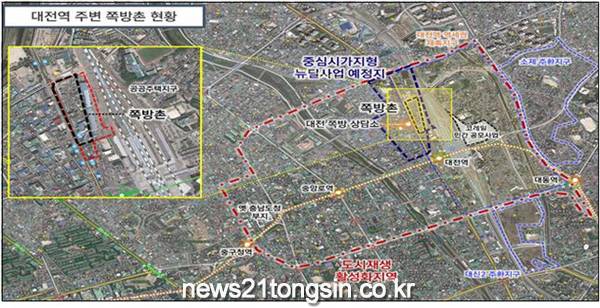 ‘대전역 쪽방촌 도시재생’은 쪽방촌을 정비하는 공공주택사업과 주상업지역을 활성화하는 사업으로 구성되는 중심시가지형 뉴딜사업으로서, 쇠퇴한 대전역 일대 변화를 선도할 것으로 기대된다.