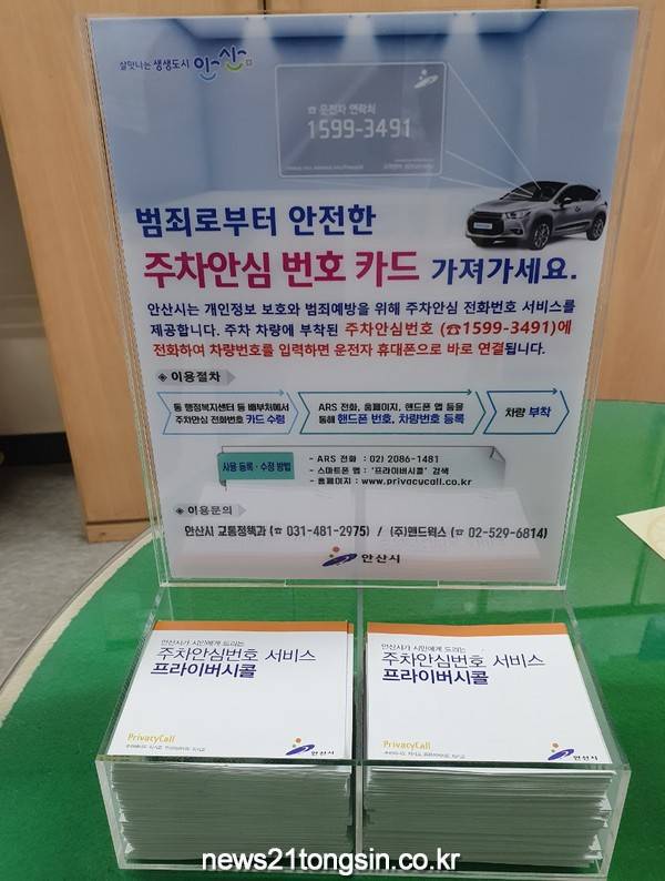 안산시(시장 윤화섭)는 주·정차 시 비상 연락용으로 차량에 비치해놓는 연락처를 악용한 범죄를 예방하기 위해 ‘주차안심번호 서비스’를 다음 달부터 시행한다고 24일 밝혔다.