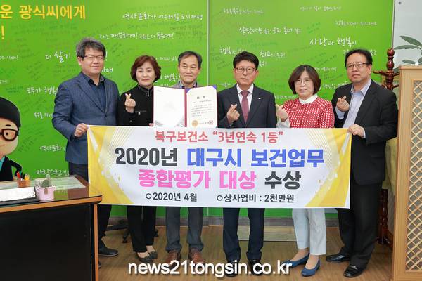 (대구=뉴스21통신) 유재원기자 = 대구 북구보건소가 2020년 대구광역시 보건업무 종합평가에서 대상을 수상했다. 이는‘3년 연속 1등’수상으로 그 의미가 더욱 깊다.