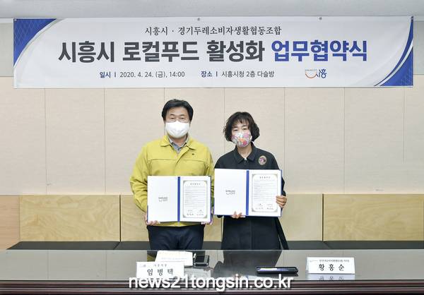 시흥시(시장 임병택)는 4월 24일 시흥시청 다슬방에서 경기두레소비자생활협동조합(이하 ‘경기두레생협’)과 업무협약을 체결했다.