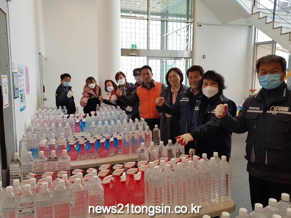 해성산업(대표 오승석)은 지난 22일 신현동 포리초등학교 학부모(회장 윤정희)에게 코로나19 예방수칙 인쇄물을 부착한 소독제(1.8ℓ)와 휴대용 소독 분무기 300개를 전달했다. ‘생활방역’ 체계 전환에 대비하기 위해 관내 초등학교 개학 시기에 맞춰 학생 및 학부모를 대상으로 진행한 코로나19 예방 캠페인이다.