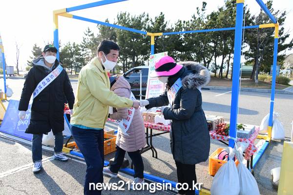 지역농어민을 돕고 사회적 거리두기에 동참하는 차원에서 ‘드라이브 스루’로 진행된 행사에는 그랑꼬또 와인, 함초빵, 딸기, 대부맛김 등 대부도 지역특산물을 최대 30%까지 할인되는 가격으로 판매됐다.