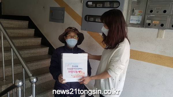 지난 1월부터는 한도병원으로부터 김치를 후원받아 코로나19로 어려움에 처한 어르신 가정에 가구당 5㎏씩, 매월 20가구에 전달하는 사업도 계속하고 있다.