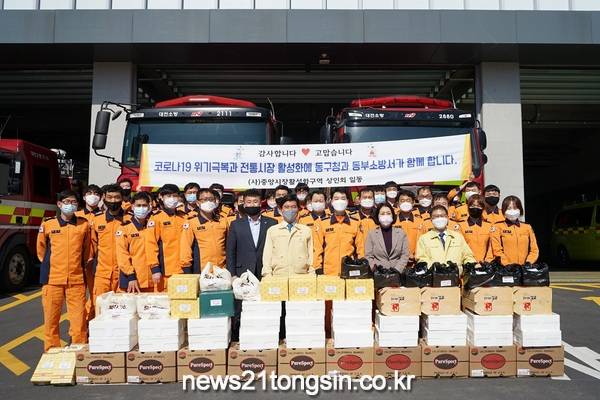 대전동부소방서는 24일 오후 코로나19로 어려움을 겪고 있는 전통시장 상인들에게 도움을 주기 위해 중앙시장에서 물품 공동구매 두 번째 행사를 가졌다.