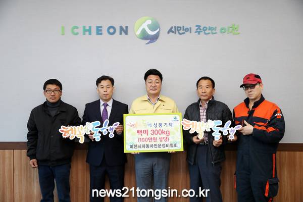 이천시자동차전문정비협회(지회장 이창우)는 27일 이천시 행복한 동행에 이천쌀 300kg을 기탁했다.