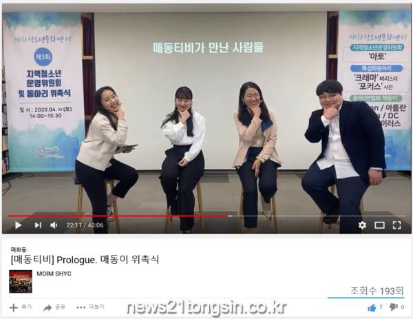 매동이 촬영영상은 시흥시청소년수련관 유튜브 채널 [MOIM SHYC]에서 누구나 시청이 가능하다.