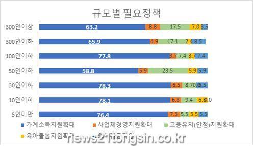 필요정책에 대한 선호도를 묻는 질문에는 규모별, 고용 형태별, 가구별 모두 ‘가계소득지원확대’에 대한 부분이 압도적으로 높게 조사됐다. 코로나19 여파로 약 2개월간 개인별 또는 가구별 소득 감소가 눈에 띄게 줄어든 상황에서 지방자치단체의 한시적 재난기본소득 지급 조치는 가계소득에 인공호흡을 불어넣는 효과를 보이는 것으로 추정된다.