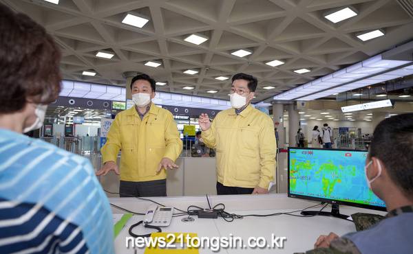 원희룡 지사는 “제주도의 발열감시 체계는 증상이 있는 사람을 분리해 제주에 들어오지 못하게 하는 것도 목적이지만, 제주에 들어온 사람들 중 증상이 발생한 경우 전국으로의 확산을 막는 데에도 목적이 있다”며 “제주에 오신 분들이 안전하게 전국으로 돌아갈 수 있도록 끝까지 방역에 최선을 다해달라”고 당부했다.